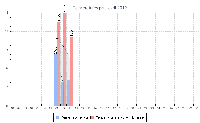 | Total | 7.5 °C | 15.0 °C | 11.3 °C | 8 km/h (29.5 km/h) | S |