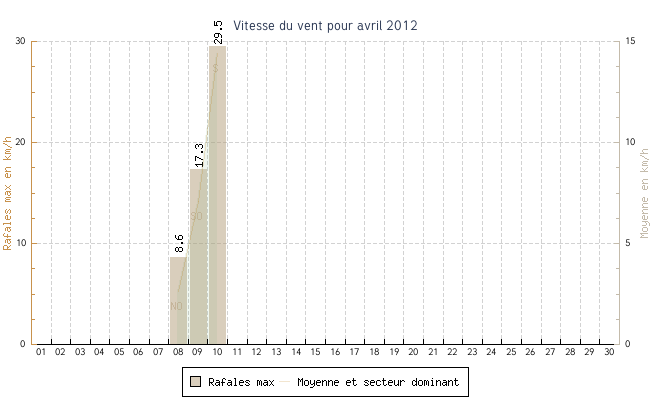 | min | max | moy | Vitesse (rafales) | Secteur | ||